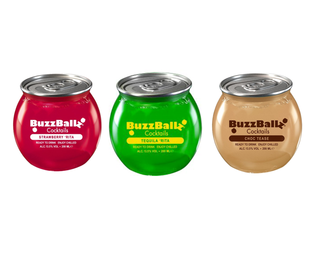 BuzzBallz are colourful, ready-to-drink cocktails. It is a fun cocktail sold in an iconic shape (round like a ball), and the colour of each can depicts the flavour and ingredients in the cocktail