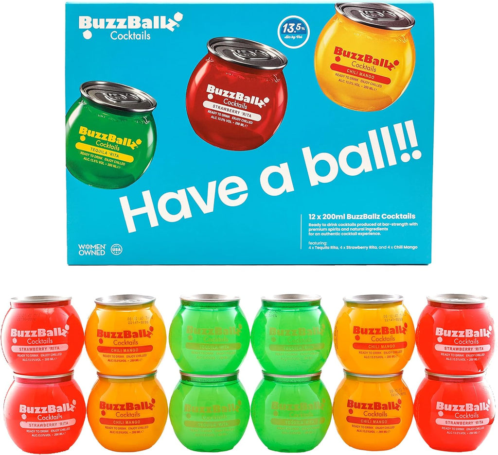 BuzzBallz Cocktails – Mixed Case (13.5% ABV) | Pre-Mixed Cocktails (12 x 200ml) | Ready To Drink  Mixed Box Contains...
