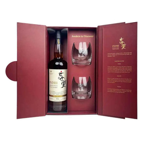 • Two Branded Indri Whisky Glasses – Designed for the perfect serve, these stylish, durable glasses enhance the drinking experience while adding elegance to any collection.