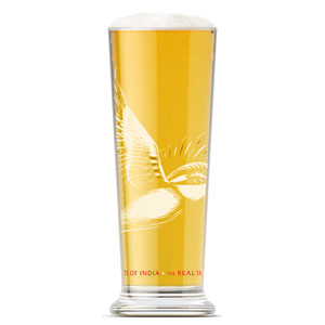 These branded Kingfisher Pint Glasses feature a red embossed logo and ornate Kingfisher design; perfect for enjoying a pint of Kingfisher in style.