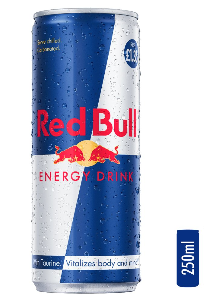 One 250ml can of Red Bull Energy Drink contains 80 mg of caffeine, about the same amount as in a cup of home-brewed coffee.