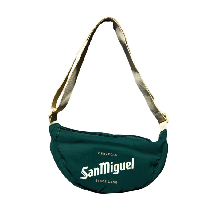 Made from durable polyester material in a sleek green colour, this crossbody bag features the iconic San Miguel brand logo, adding a touch of authenticity to the design.
