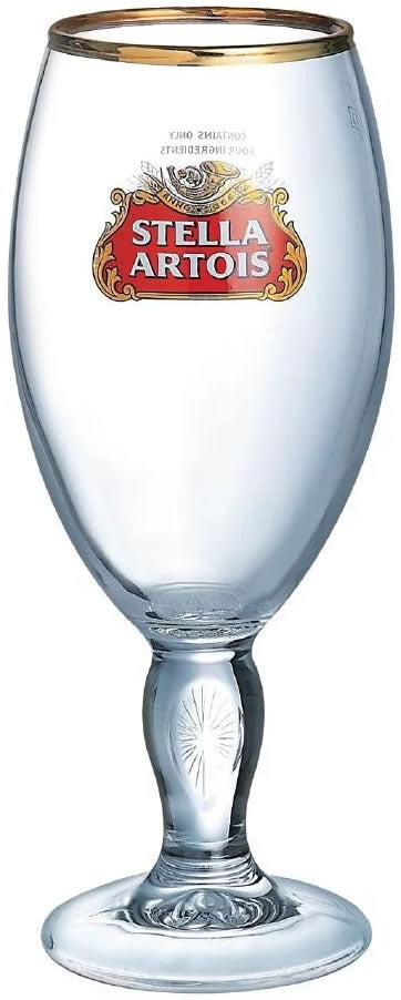 This elegant stemmed Stella Artois half pint chalices feature the Stella Artois brand logo on the front of the glass.