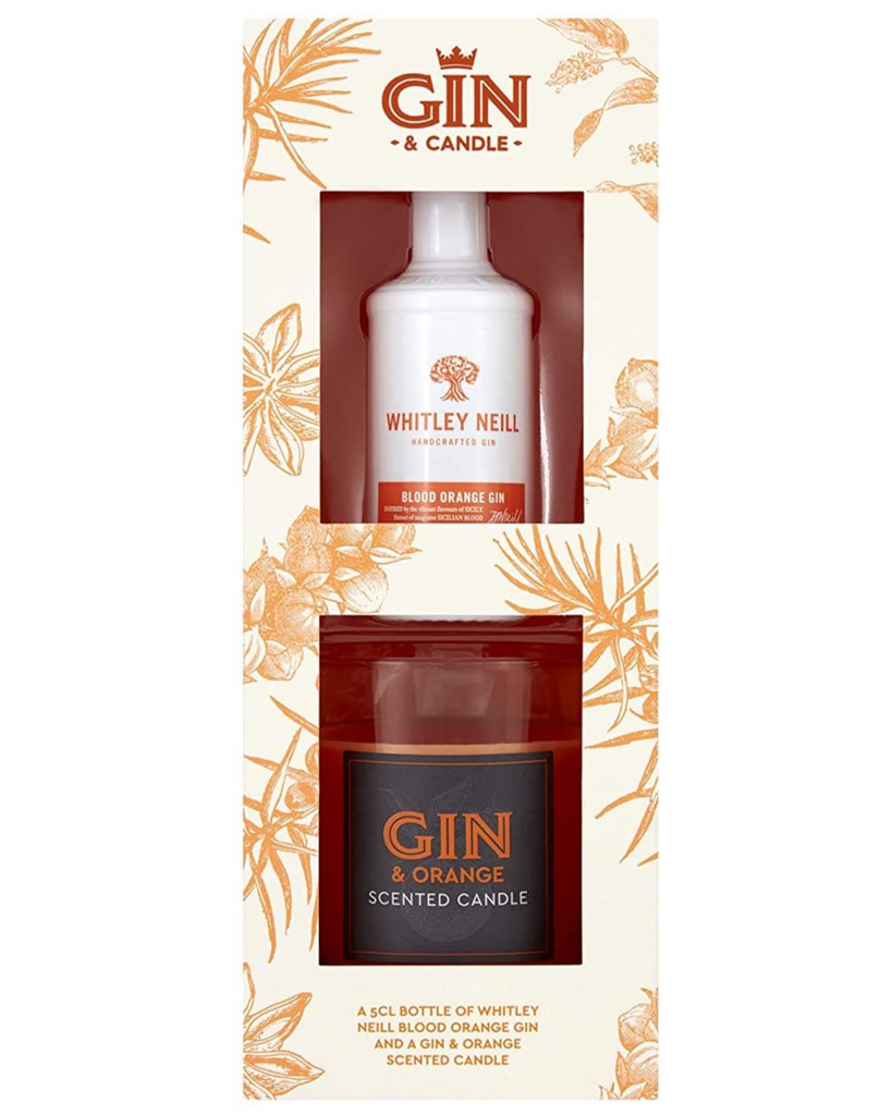 a 5cl bottle of Whitley Neill Blood Orange Gin and a Gin & Orange scented candle